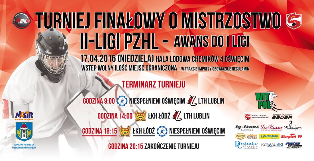 W niedzielę 17 kwietnia w Hali Lodowej przy ul. Chemików 4 w Oświęcimiu odbędzie się turniej finałowy II ligi, którego stawką będzie awans do wyższej klasy rozgrywkowej. Zmierzą się w nim drużyny Niespełnionych Oświęcim, LTH Lublin oraz ŁKH Łódź.
