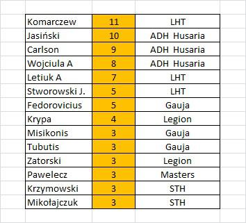 Grający bez swego lidera – Henrika Carlsona, białostocczanie dowieźli jednobramkowe zwycięstwo do końcowej syreny, mimo że ostatnie 90 sekund bronili się 3 na 6 ( Gauja wycofała bramkarza). Porażka z Husarią, na tyle mobilizująco podziałała na gospodarzy, że w następnym meczu, ograli oni głównego pretendenta do zwycięstwa w tej grupie 2 ligi – LHT Lublin 4:1. Grający ostro na bandach Lublinianie, co chwila lądowali na ławce kar, ułatwiając zadanie gospodarzom, którzy 3 z 4 strzelonych przeciwnikowi bramek, uzyskali grając w przewadze 5 na 4. Na słowa uznania zasługują zawodnicy Masters Giżycko. Zdziesiątkowana kontuzjami drużyna, dzielnie stawiała czoła wyżej notowanym przeciwnikom, czego najlepszym przykładem jest zwycięstwo 1:0 w pierwszej tercji meczu z Husarią Białystok.