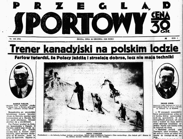 "Trener hokejowy dla Polski został już zaangażowany za pośrednictwem konsulatu w Montrealu. Jest nim Harold Farlow z Toronto H.C. jeden z najlepszych graczy tego zawodowego klubu. Trener wyjechał z Ameryki w niedzielę 30 ub. m. i prawdopodobnie przybędzie do Polski w połowie grudnia. Pertraktacje ze znanym Kanadyjczykiem dr. Watsonem stają się przez to samo nieaktualne."