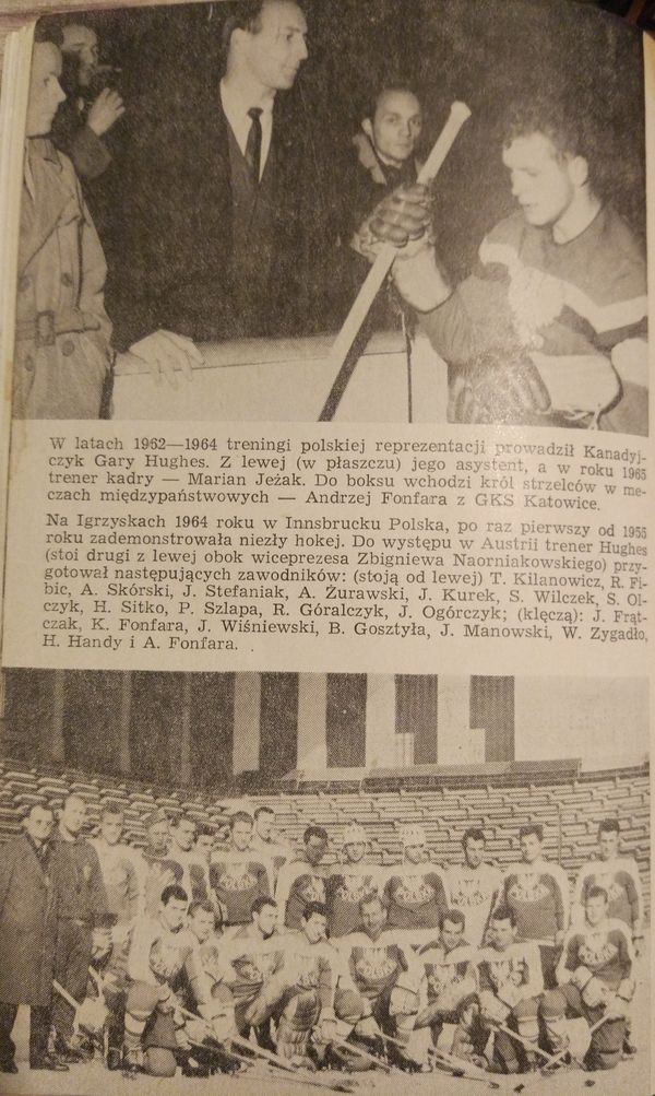 „Na prośbę PZHL prezes LIHG namówił Kanadyjczyka Gary Hughesa, aby się podjął w Polsce pracy trenera. Hughes, który grywał w swym rodzinnym kraju, a następnie w Anglii, był później trenerem w Danii, której hokej zaczął stawiać pierwsze kroki. Kiedy przyjechał do Polski nie umiał ani słowa po polsku, ale miał dziwny dar nawiązywania kontaktu z zawodnikami. Po roku poznał trochę język w czym walnie mu pomógł jego asystent, dawny reprezentant Polski, Marian Jeżak władający angielskim.