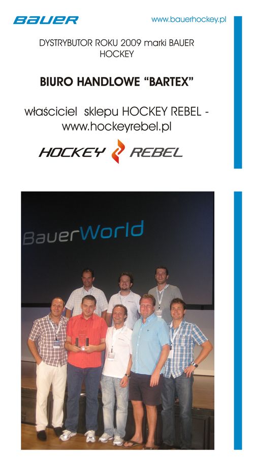 Z przyjemnością pragniemy zakomunikować iż, firma BAUER HOCKEY przyznała nagrodę DYSTRYBUTORA ROKU 2009 polskiej firmie. Zwycięzcą zostało Biuro Handlowe „Bartex” www.bauerhockey.pl, które jest partnerem Hokej.Net