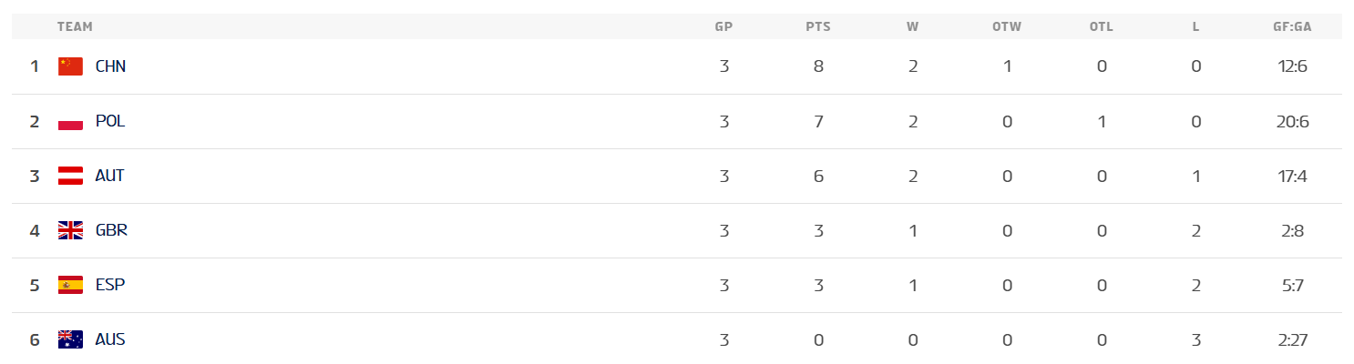 Takie rezultaty pozwalają im plasować się na drugiej lokacie ze stratą jednego punktu do lidera z Chin i najlepszy bilans bramkowy na turniej (+14).