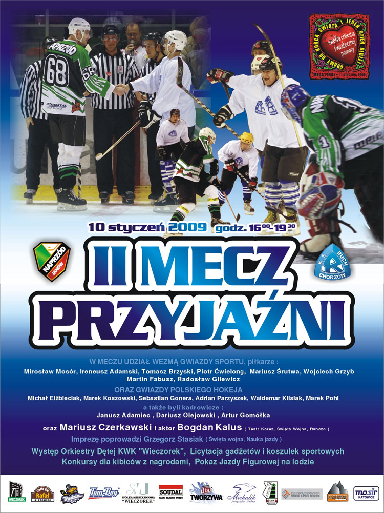 Zaprzyjaźnione ze sobą drużyny Naprzodu Janów i Ruchu Chorzów zagrają po raz drugi na rzecz Wielkiej Orkiestry Świątecznej Pomocy! Oba zespoły zmierzą się na lodowisku w Janowie już 10. stycznia.