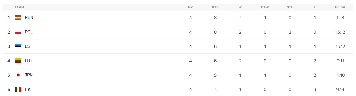 Obecnie przodują Węgrzy, potem są kolejno Polacy, Estończycy, Litwini, Japończycy i Włosi. Aż cztery ekipy mogą jeszcze matematycznie awansować, ale i dokładnie tyle samo może jeszcze spaść.