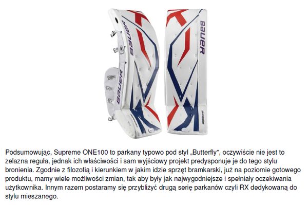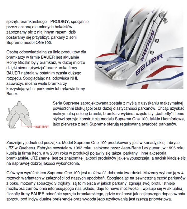 Dzisiaj coś dla bramkarzy, przyjrzymy się jednemu najwyższych modeli parkanów firmy BAUER. Aktualnie firma prowadzi dwie linie sprzętu bramkarskiego, Supreme oraz RX. Linia RX to pewnego rodzaju kontynuacja i nawiązanie do linii RX firmy Itech, która firma BAUER przejęła już jakiś czas temu.