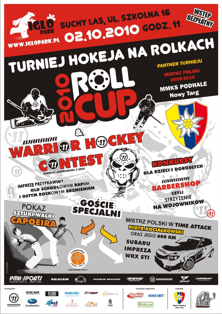 2 października na lodowisku Iglo Park w Suchym Lesie odbędzie się turniej hokeja na rolkach Roll Cup 2010 oraz Warrior Hockey Contest. Partnerem turnieju jest Mistrz Polski 2009/2010 MMKS Podhale Nowy Targ.