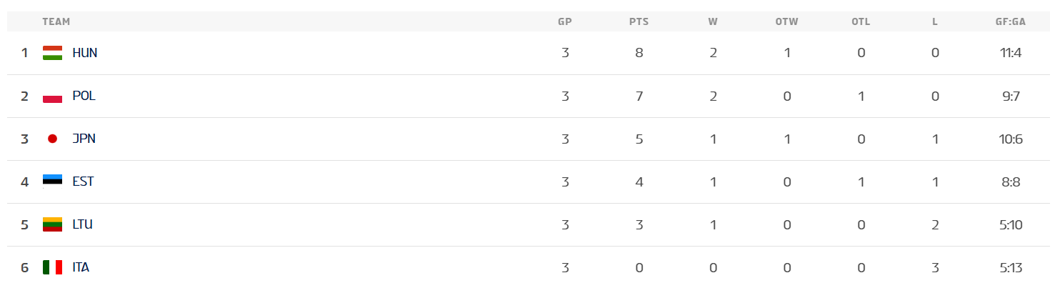 "Orły" bardzo dobrze rozpoczęły turniej, bo od pokonania Włochów (4:2) oraz Japonii (2:1). W swoim trzecim i jednocześnie najcięższym starciu ulegli natomiast Węgrom 3:4 po dogrywce, którzy to są spadkowiczami z Dywizji IA.