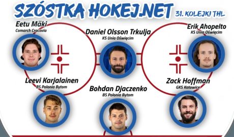 Bohdan Djaczenko (BS Polonia Bytom), Leevi Karjalainen (BS Polonia Bytom), Zack Hoffman (GKS Katowice), Eetu Mäki (Comarch Cracovia), Daniel Olsson Trkulja (KS Unia Oświęcim), Erik Ahopelto (KS Unia Oświęcim) – to szóstka najlepszych graczy 31. kolejki TAURON Hokej Ligi wybrana przez dziennikarzy portalu HOKEJ.NET.