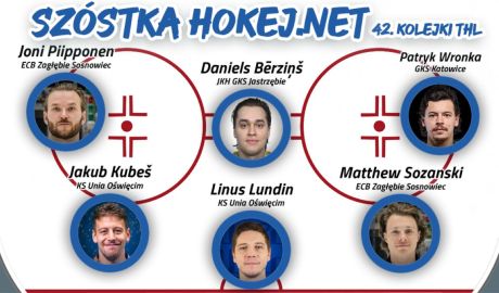 Linus Lundin (KS Unia Oświęcim), Jakub Kubeš (KS Unia Oświęcim), Matthew Sozanski (ECB Zagłębie Sosnowiec), Joni Piipponen (ECB Zagłębie Sosnowiec), Daniels Bērziņš (JKH GKS Jastrzębie), Patryk Wronka (GKS Katowice) – to szóstka najlepszych graczy 42. kolejki TAURON Hokej Ligi wybrana przez dziennikarzy portalu HOKEJ.NET.