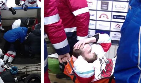 Koszmarne sceny rozegrały się podczas meczu w Kijowie. Hokeista stracił przytomność siedząc na ławce, a teraz okazuje się, że będzie potrzebował operacji mózgu.