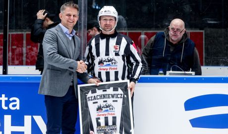 Sławomir Szachniewicz zakończył sędziowską karierę. W sobotę podczas meczu Polska – Słowenia w Tychach po raz ostatni wyjechał na lód jako arbiter liniowy, zamykając 26-letnią przygodę z gwizdkiem. Doświadczonego sędziego pożegnano wzruszająco: z honorami, pamiątkową koszulką i podziękowaniami od reprezentantów Polski.